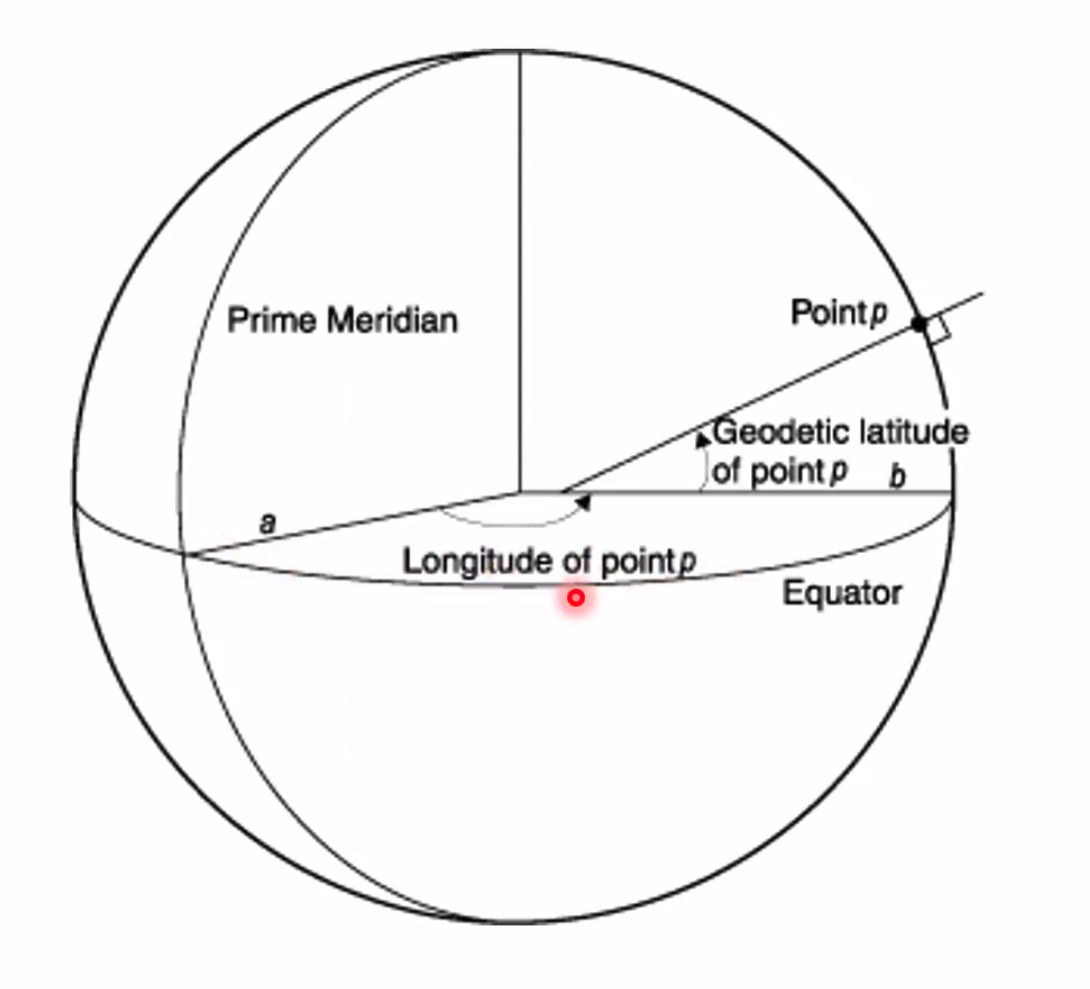 - Geodetic latitude and longitude is used to define position on the WGS-84 ellipsoid