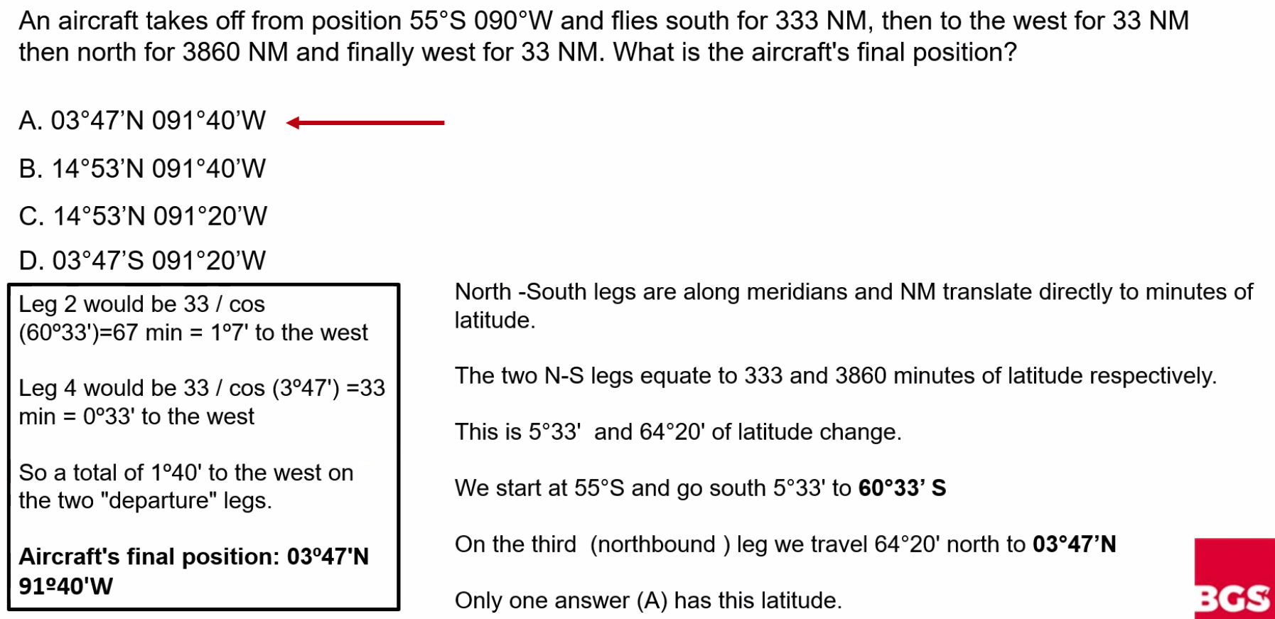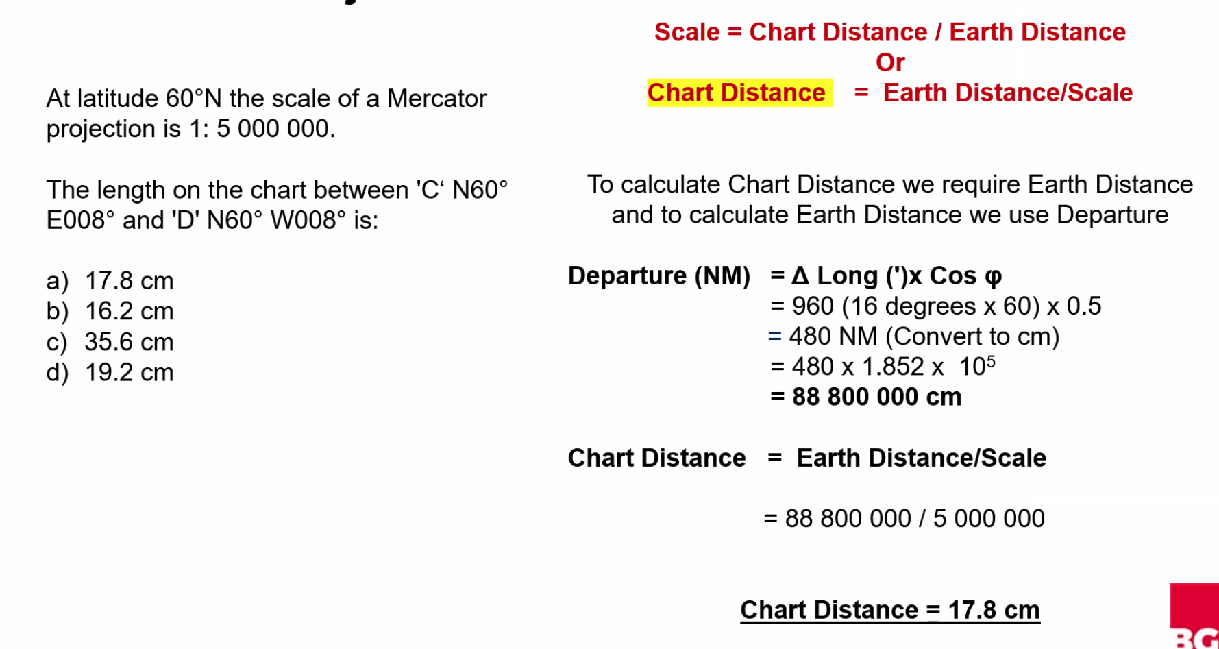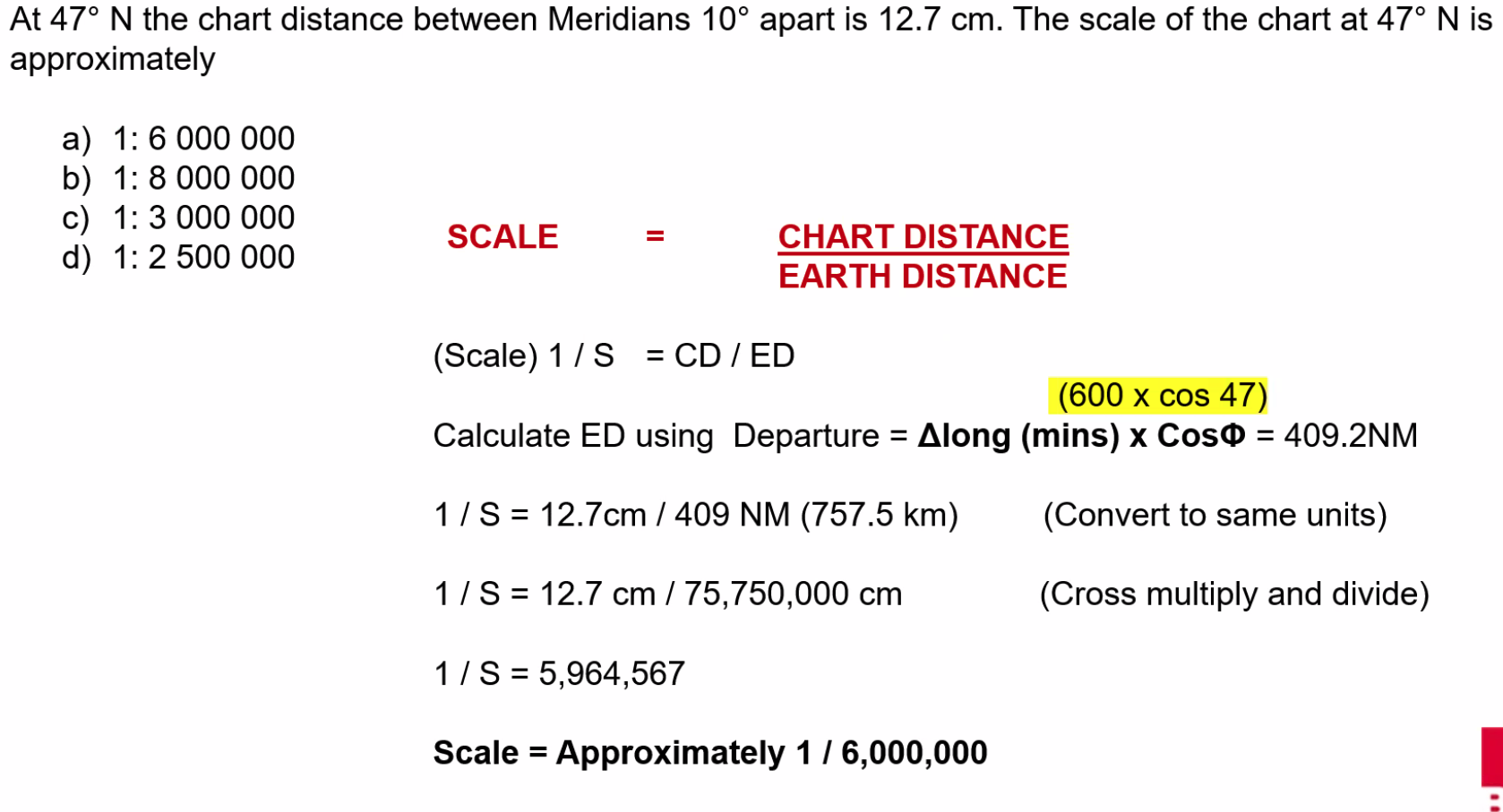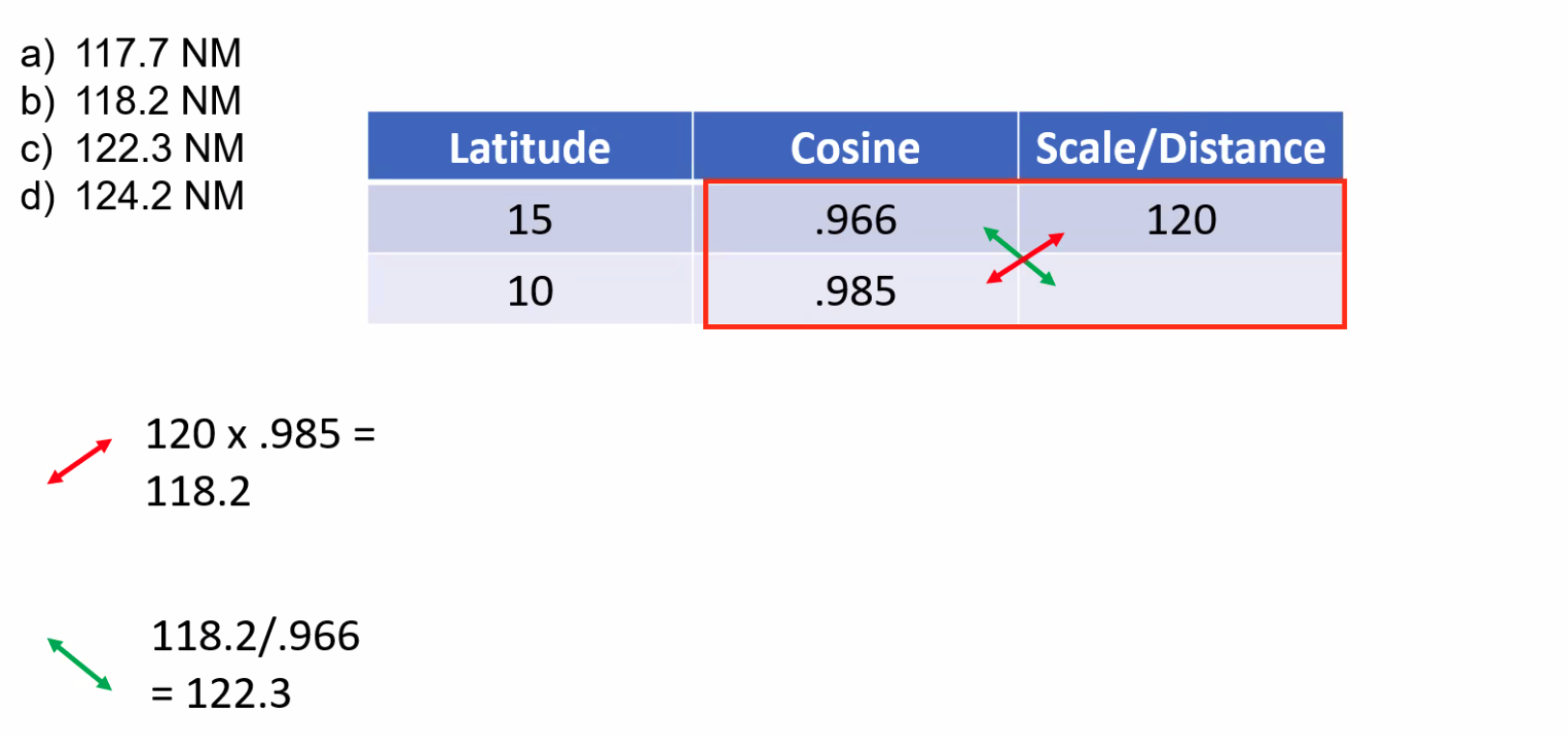 ==Departure (NM) = Change of Longitude (’) × Cos(Latitude)==