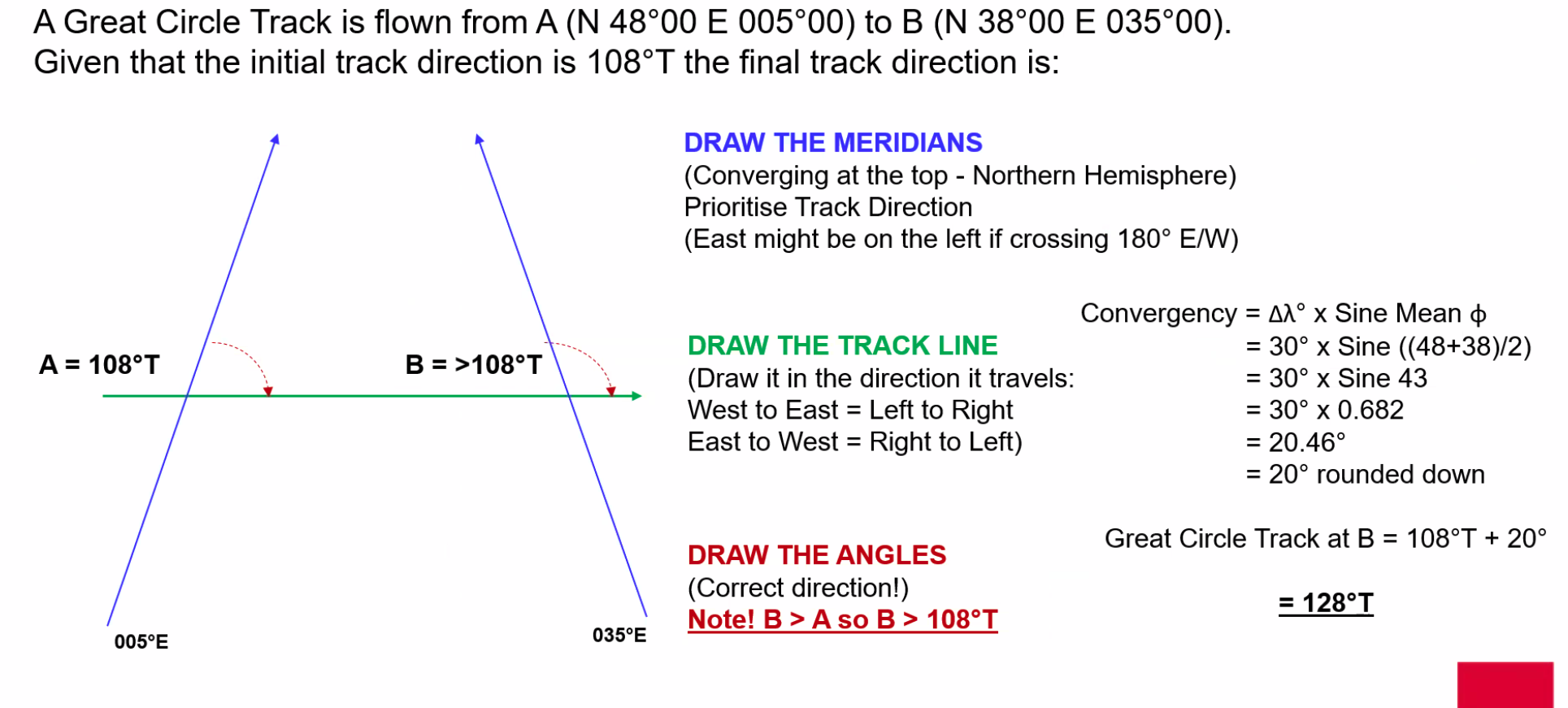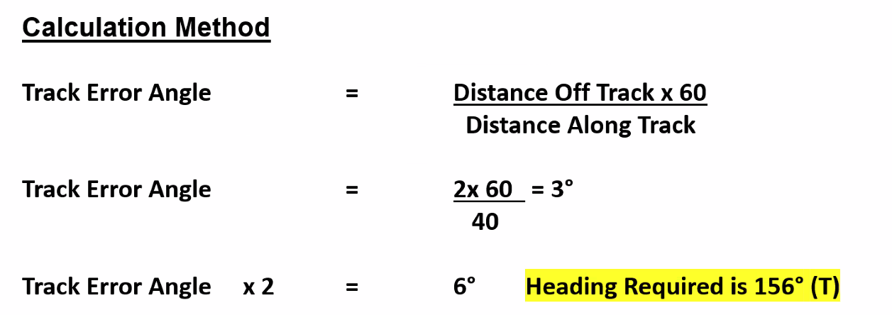==Change of heading required to reach next waypoint from position off track = TKE + CA==