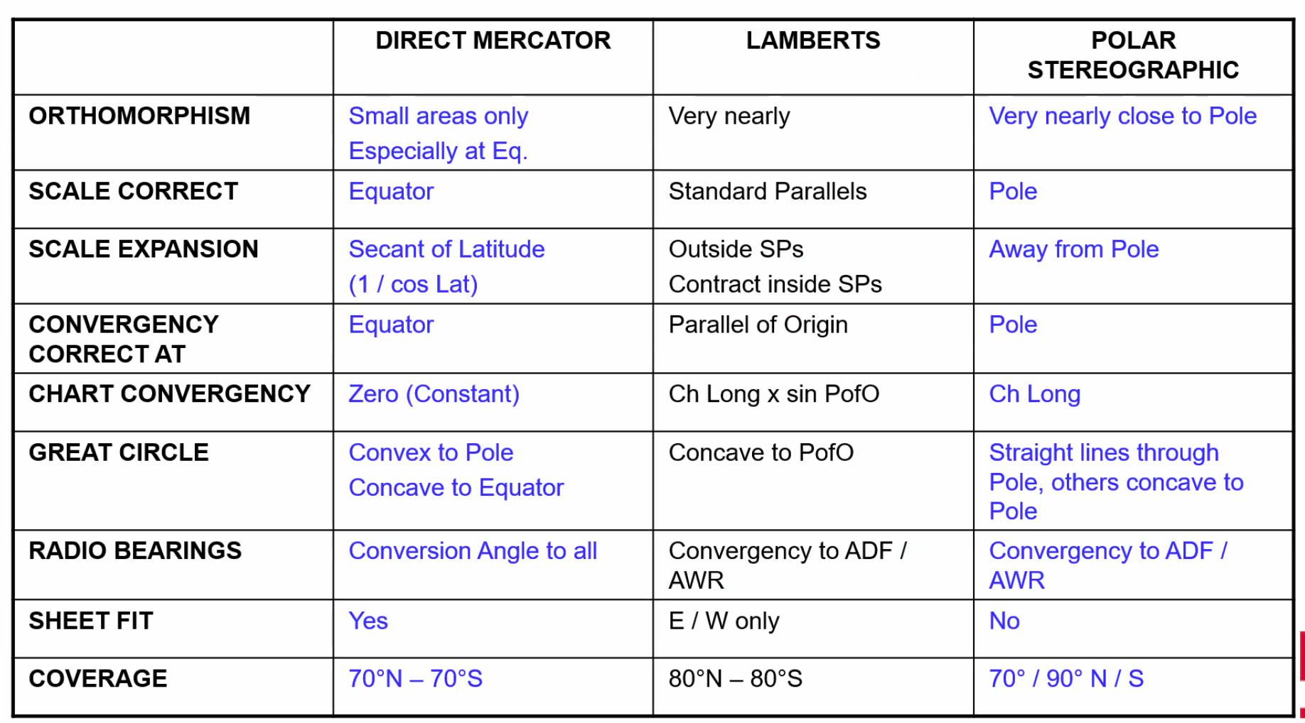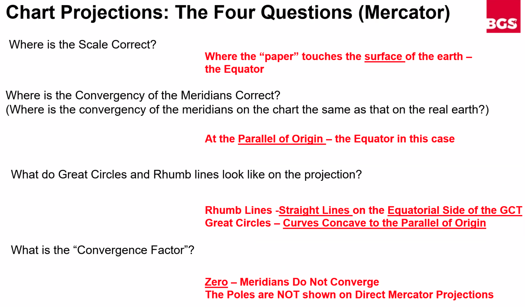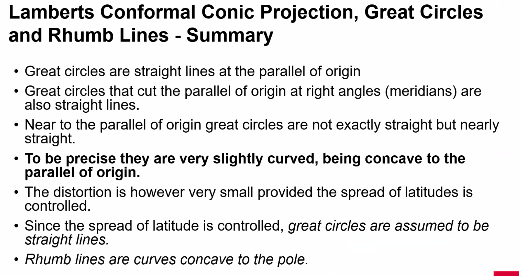 - All latitudes other than the equator are small circles and rhumb lines