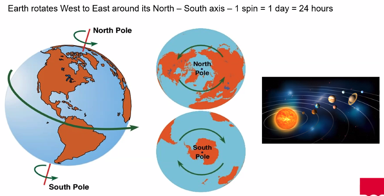 - Meridians run North to South