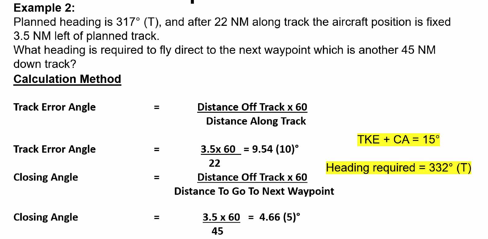 ==1 NM of cross track error for every 60 NM along track from waypoint = 1° of track error angle (TKE)==
