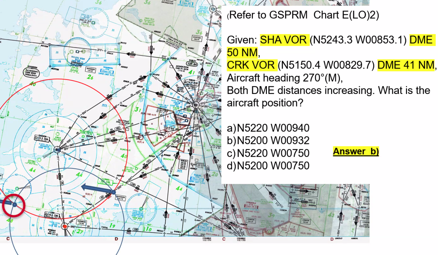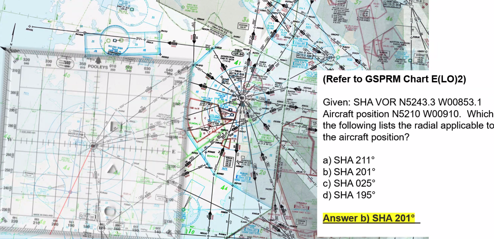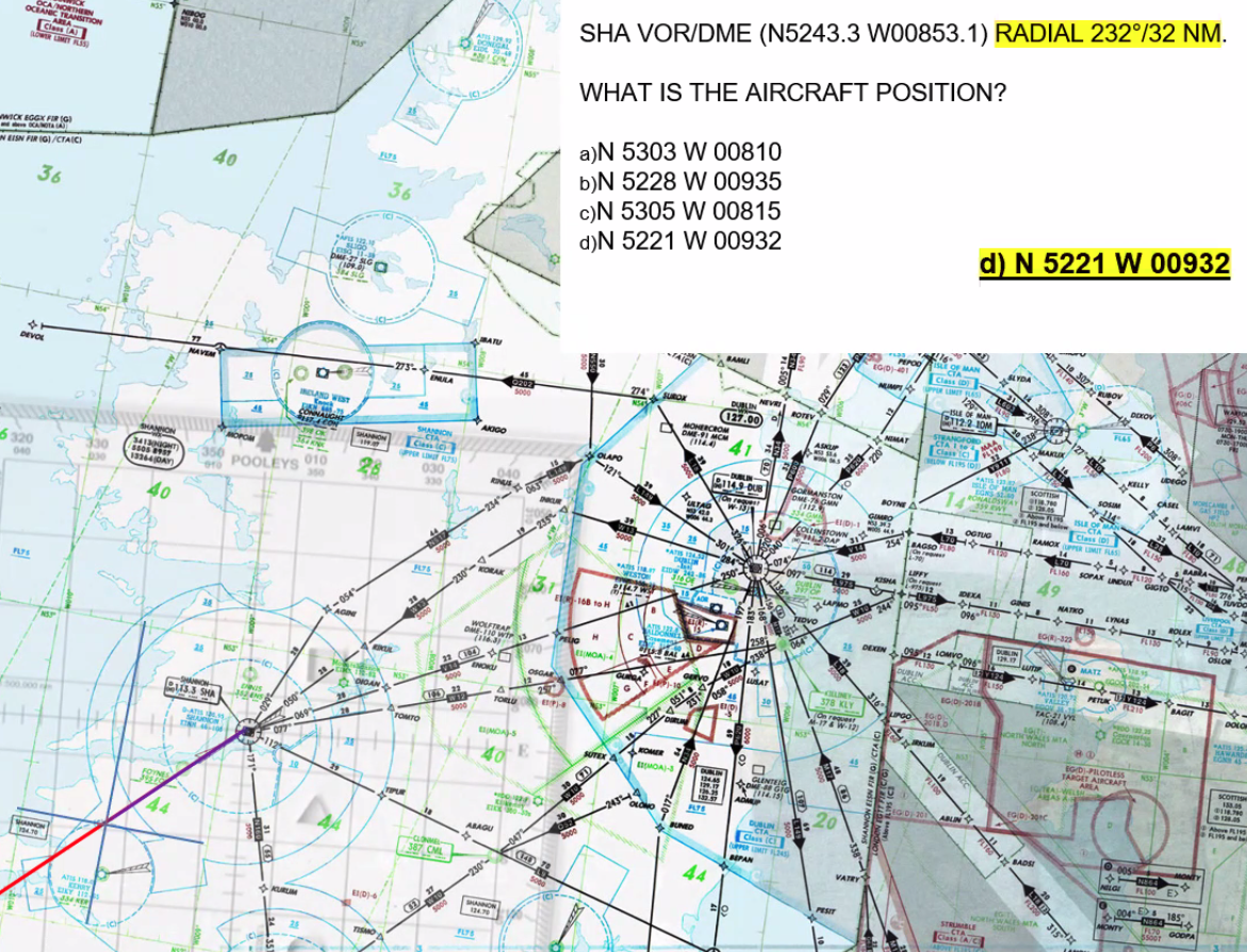 Q. Given SHA VOR. Aircraft position of N5210 W00910. Which of the following lists the radial applicable to the aircraft position?