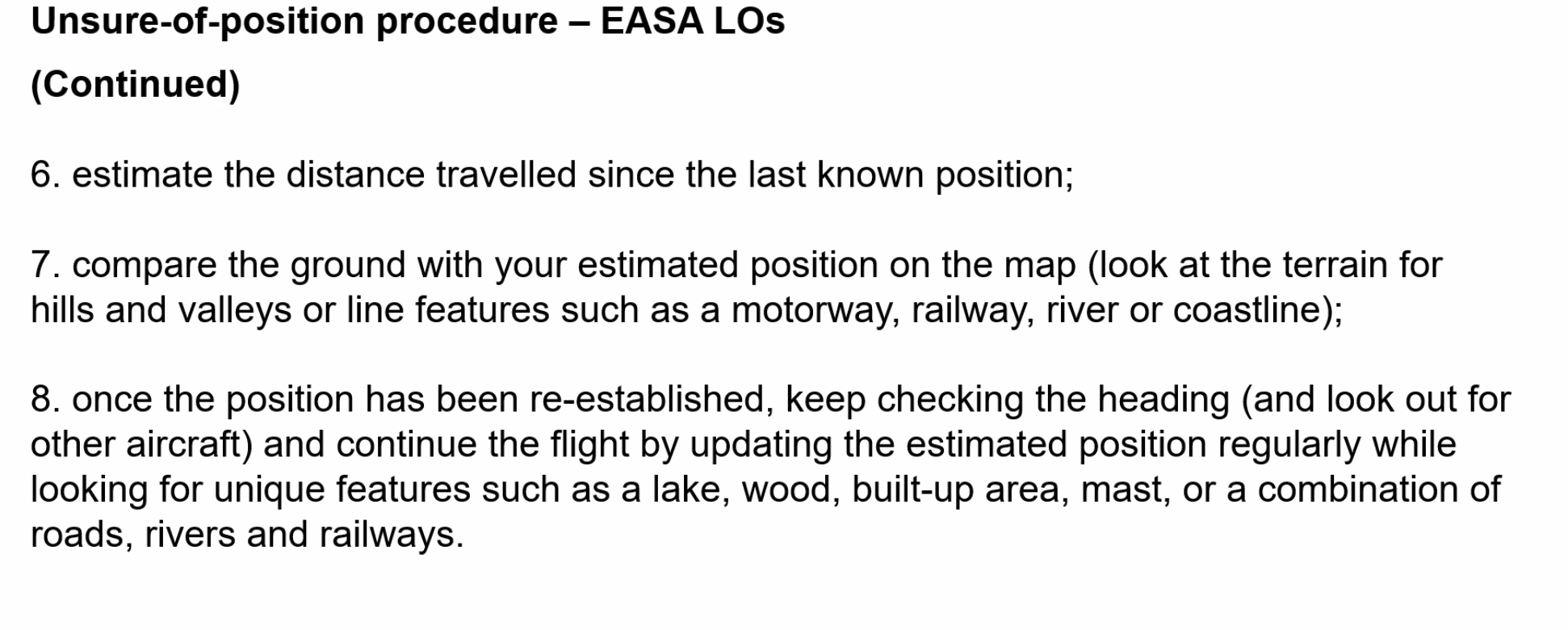Choice of ground feature is critical, as things that show up well on maps do not necessarily show up from the air