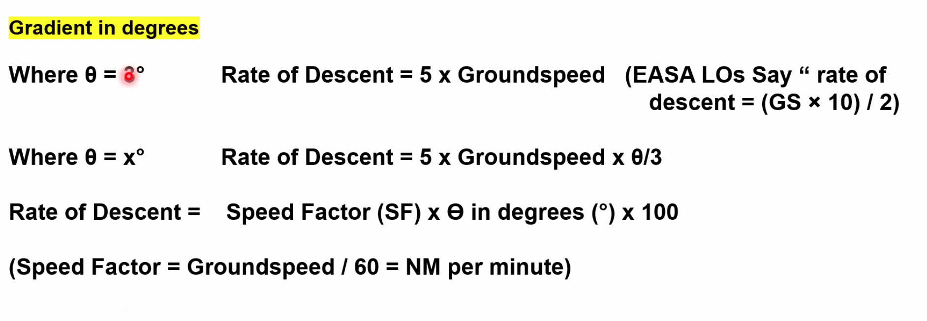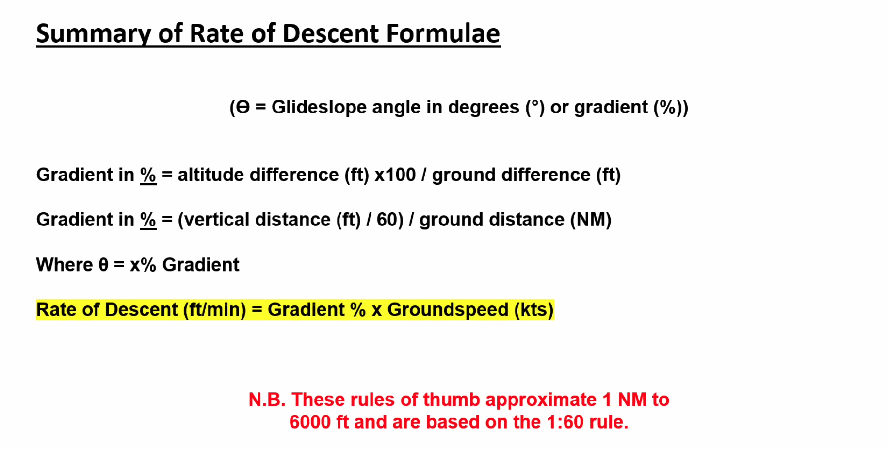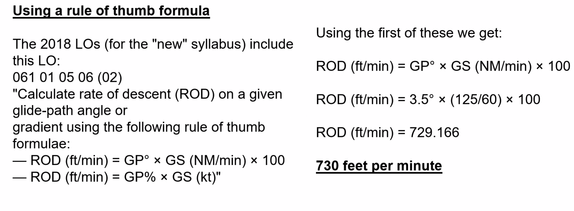 9/10 the Rate of Descent = 5 x GS will work