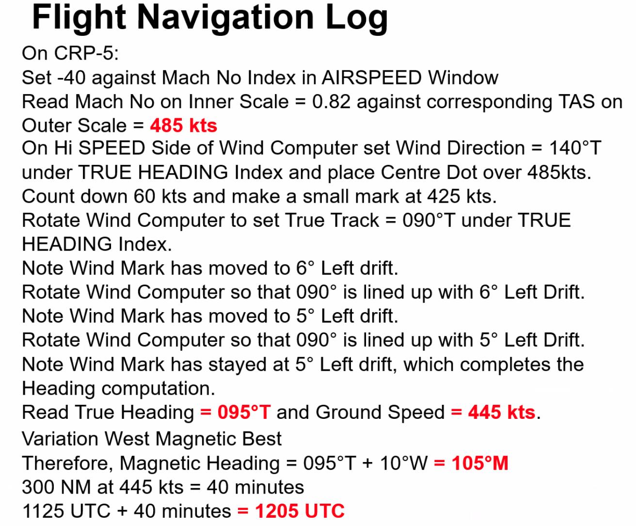 Heading is determined by calculating the XWC and using the Speed Factor to get the drift affecting the aircraft and then applying the WCA (same magnitude opposite direction to the drift).