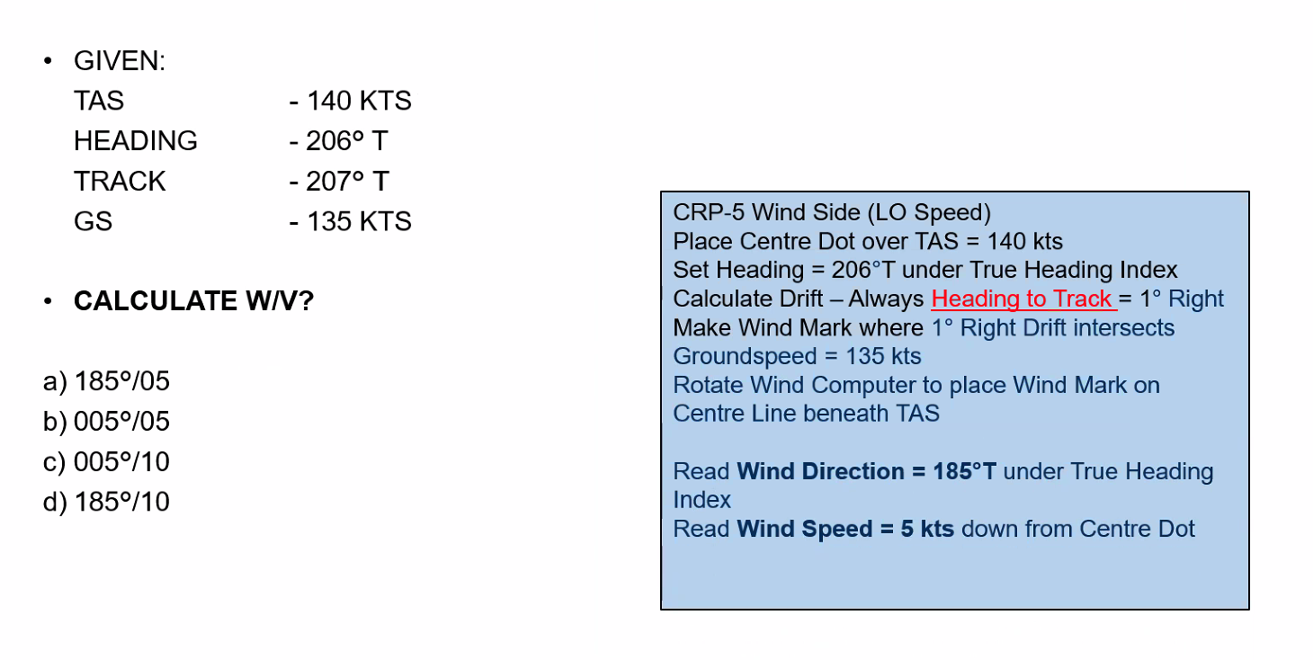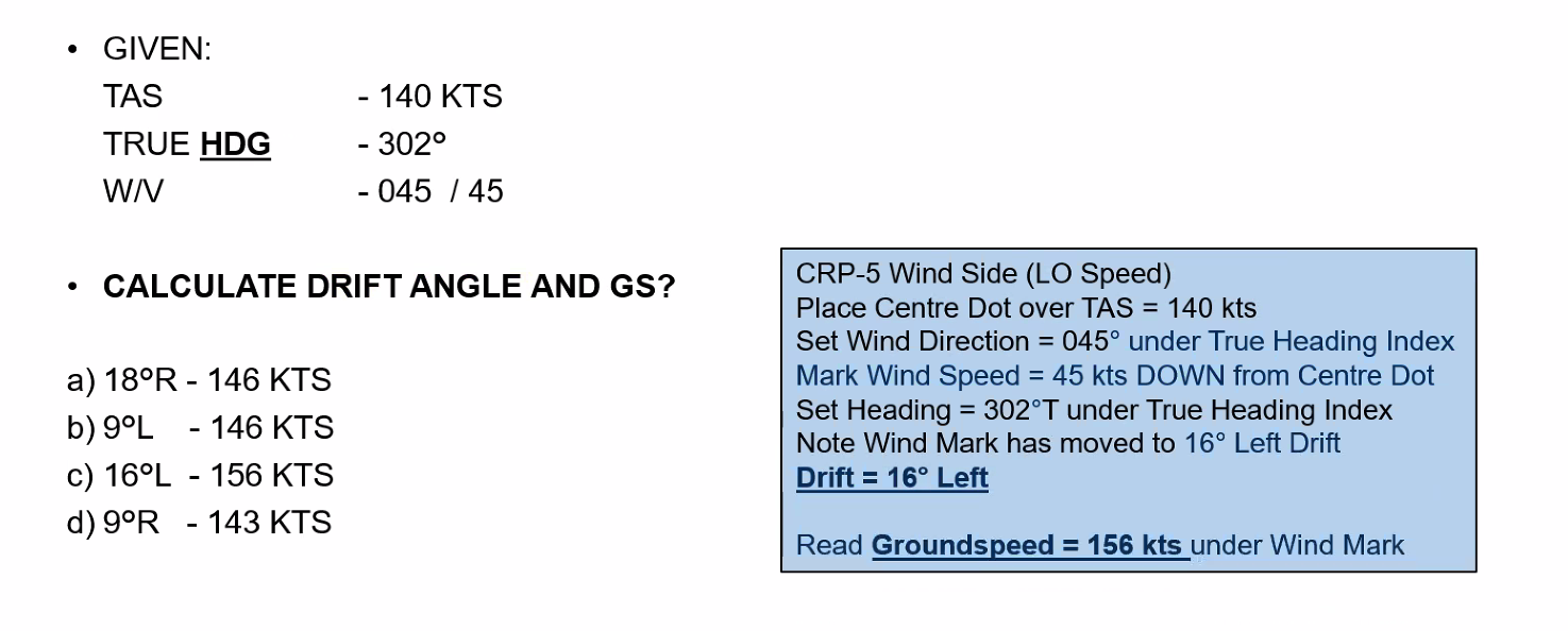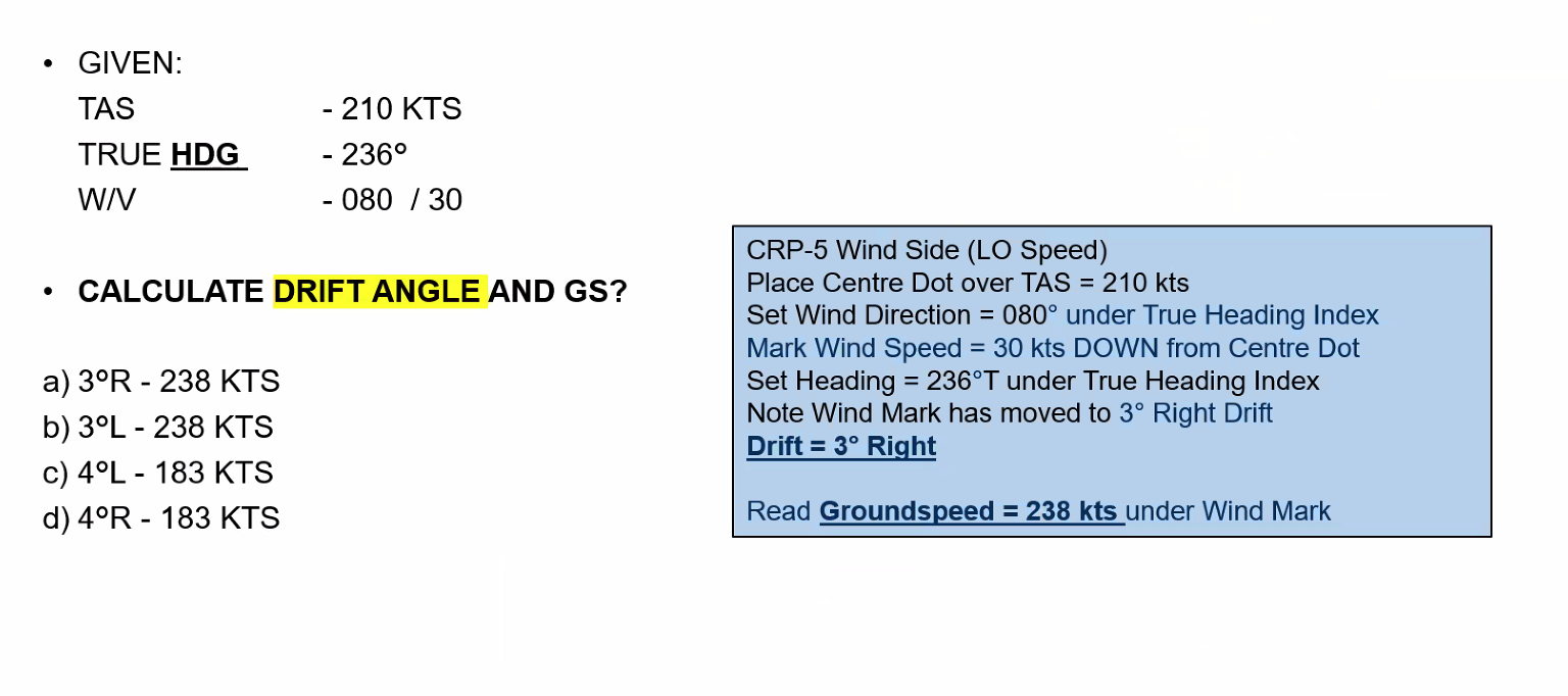 XWC = 1/2 × 60 = 30 kts WCA = 30 / SF WCA = 30 / 3 = 10° Drift is left so WCA is right.