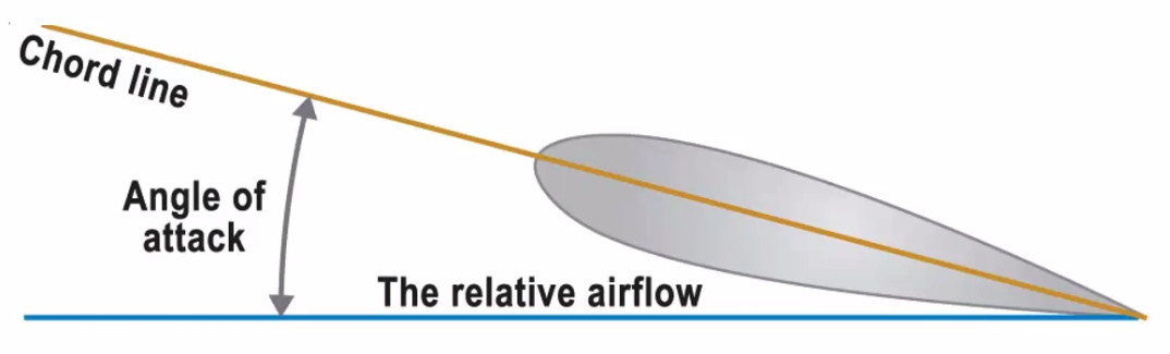 Angle of Attack - angle of the chordline (alpha) to the relative airflow
