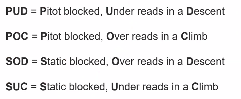 - Static port blocked - indication freezes, use alternate static source if possible, which will over read (a bit)