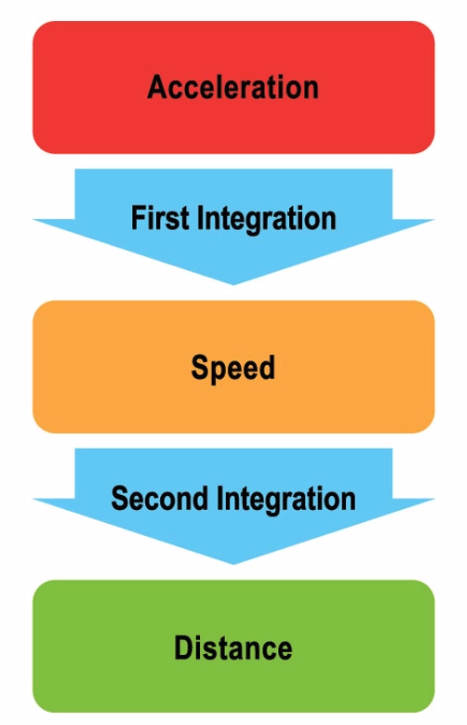 - Second integration - multiply speed x time = ==distance==