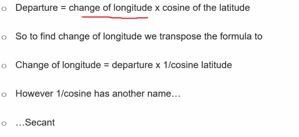change of longitude = departure x secant of the latitude
