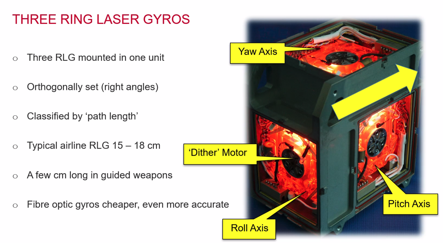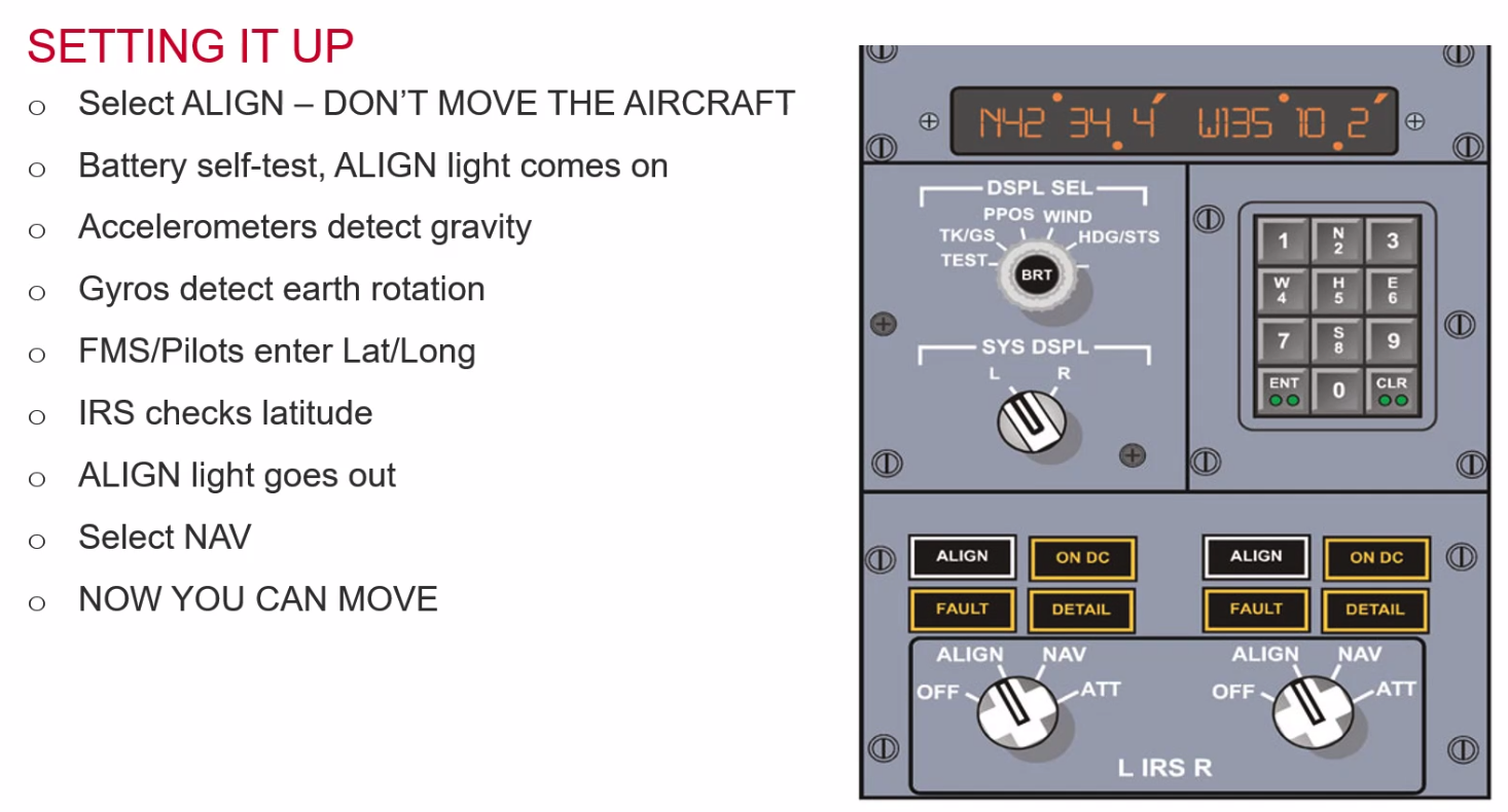 - IRS has 3 gyros - roll, pitch and yaw